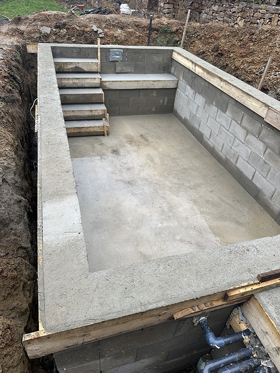 Műanyag medencék mellett vállaljuk egyedi épített medencék készítését is.